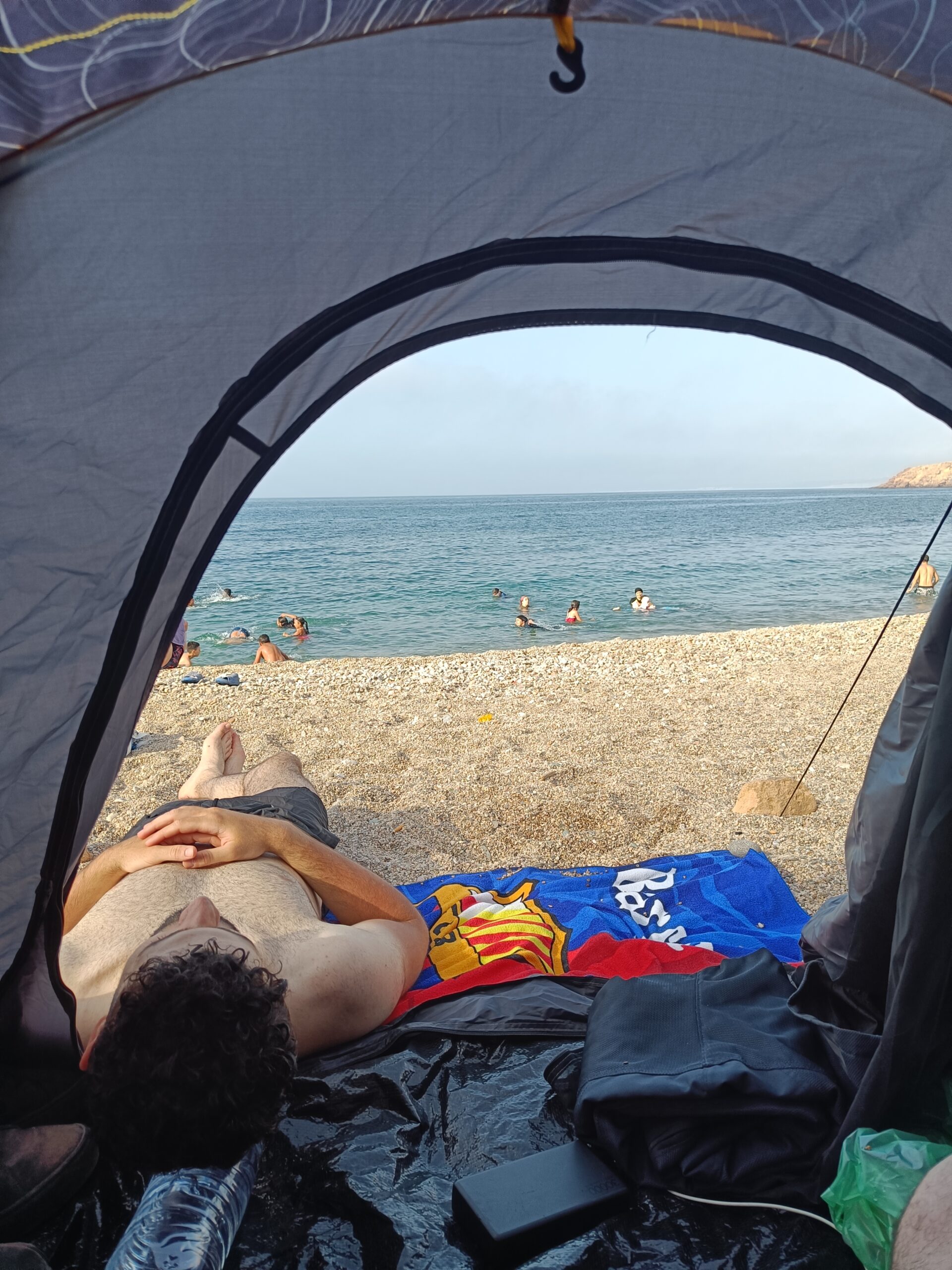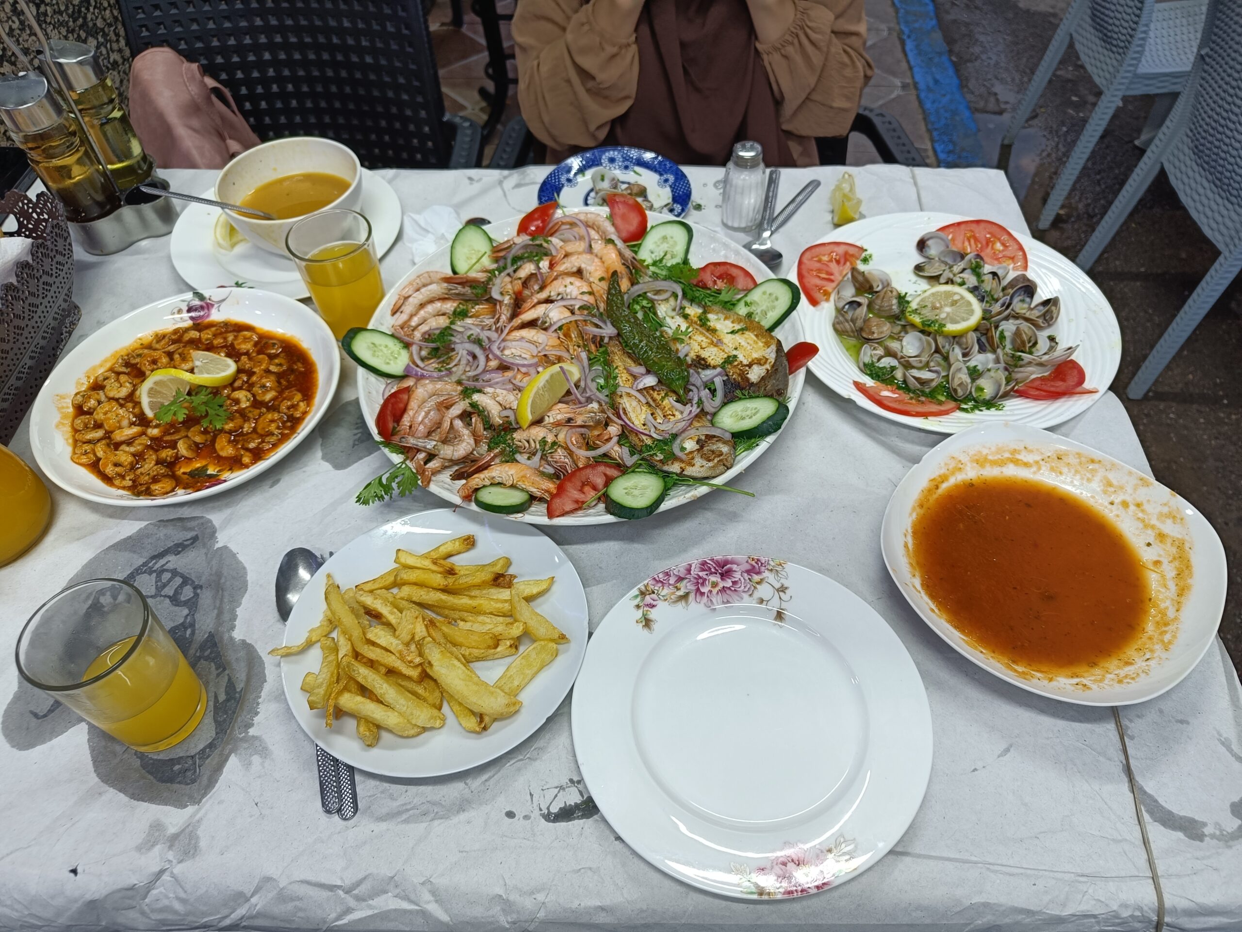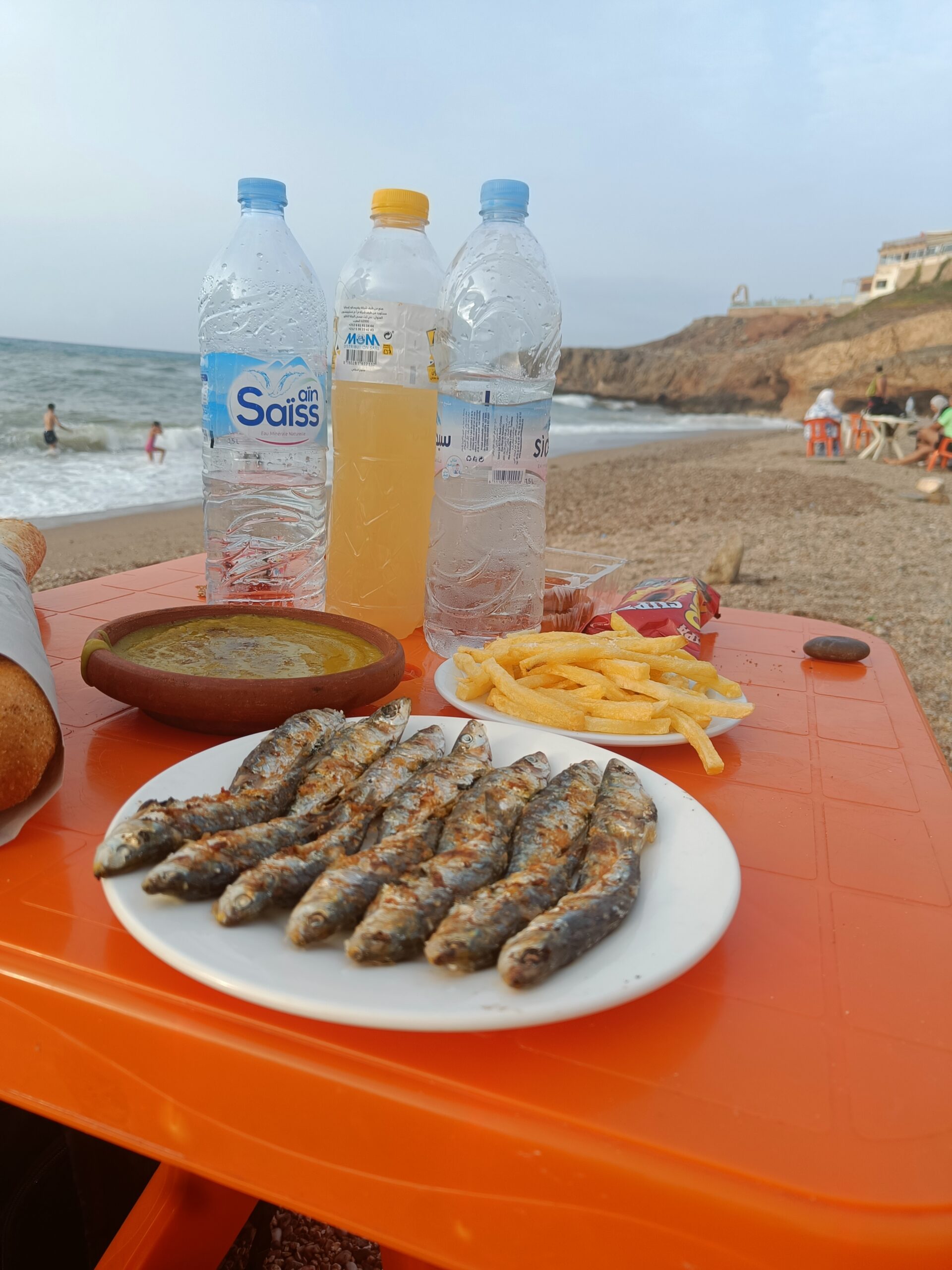 vis eten op het strand in Nador